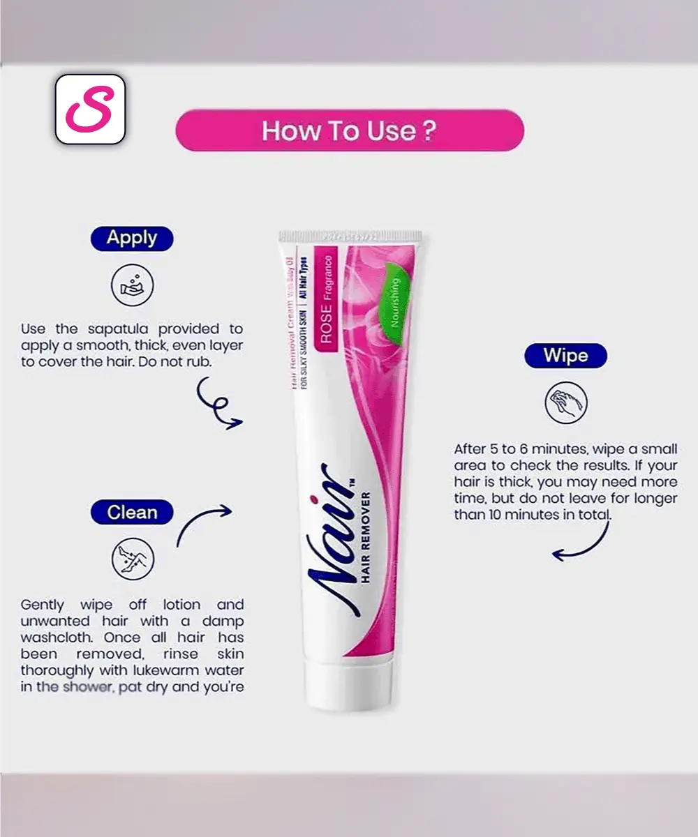 Achieving smooth skin with Nair Best Hair Remover Safety Cream is as easy as following these steps:
